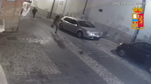 Nel video il momento della fuga dei due malviventi dopo al rapina con l'ascia nella tabaccheria di piazza Duomo. Alle 19.20 di lunedì 10 settembre 2018, due individui, a volto