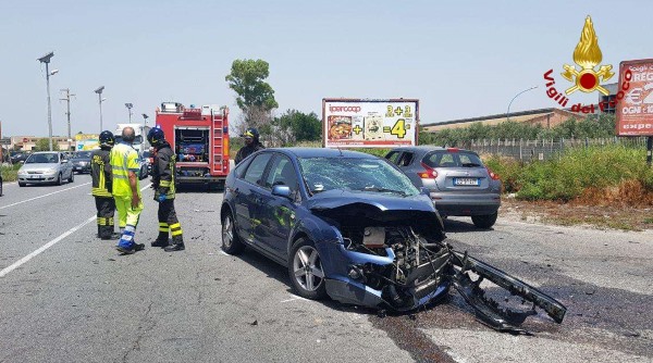 Coinvolte due autovetture e un autoarticolato: tre feriti sono stati trasportati presso l'ospedale cittadino.Questa mattina alle 11:55 veniva allertata la sala operativa del