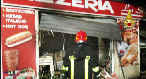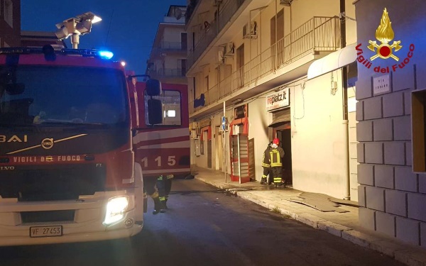 Prima una violenta esplosione e poi le fiamme nella pizzeria "La Stangata"Questa notte, alle ore 2.00 circa, due squadre dei vigili del fuoco di Crotone con tre automezzi, sono