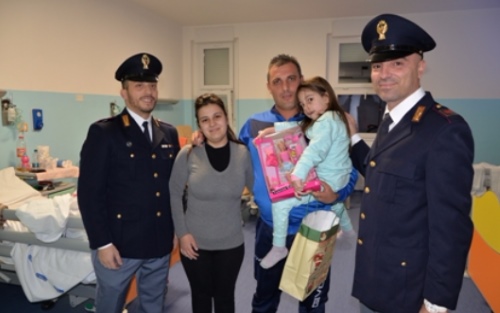 Poliziotti della Questura di Crotone consegnano doni natalizi ai bambini ricoverati presso il Reparto Pediatria dell’Ospedale San Giovanni di Dio. In occasione del Santo Natale