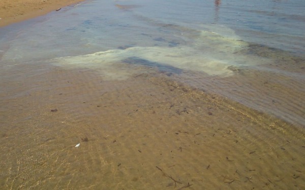 Questa mattina sulle acque basse del litorale cittadino sono comparse due grandi chiazze gialle la cui provenienza rimane al momento ignota. Le chiazze dondolano tranquille sulla riva del mare lungo il tratto compreso tra Piazza Gramsci e Piazzale Ultrà.