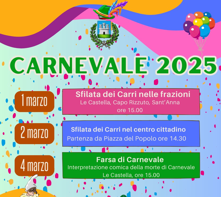 Dopo il successo degli ultimi anni, torna a Isola Capo Rizzuto il Carnevale, una festa simbolo di allegria e aggregazione che unisce cittadini e associazioni in una giornata di
