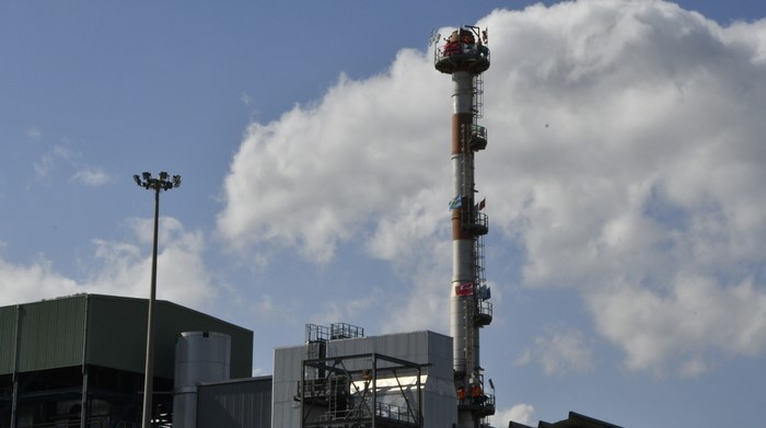 Hanno trascorso la notte a 52 metri di altezza sulla ciminiera della centrale a biomasse di Cutro (Crotone) due dei 15 operai della Serravalle Energy saliti ieri pomeriggio per