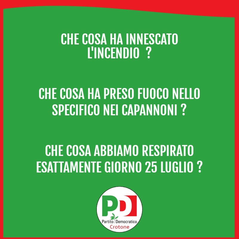 «Abbiamo ancora negli occhi la nube nera e densa che si è levata in cielo nella giornata di martedì 25 luglio e che ha destato non poche preoccupazioni nella comunità crotonese