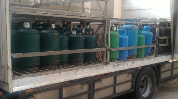 Il GPL trasportato su un autocarro dalla Campani in bombole per uso domestico di 10 e 25kg.Circa 650 chili di GPL (gas di petrolio liquefatto) contenuto in bombole, trasportate