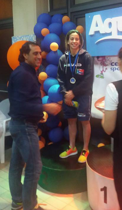 Ilaria Fonte dei NuotatoriKrotonesi stabilisce il nuovo record calabrese nei 100 dorsoSabato 9 gennaio 2016, Meeting di nuoto del Miglio D'Oro, Centro Sportivo di Portici: Con