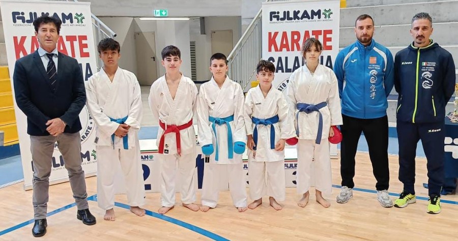 I cinque esordienti dell’ASD Accademia Karate Crotone, presentati alla fase regionale di qualificazione tenutasi presso il nuovo Palazzetto dello Sport ad Acri (CS) domenica 12