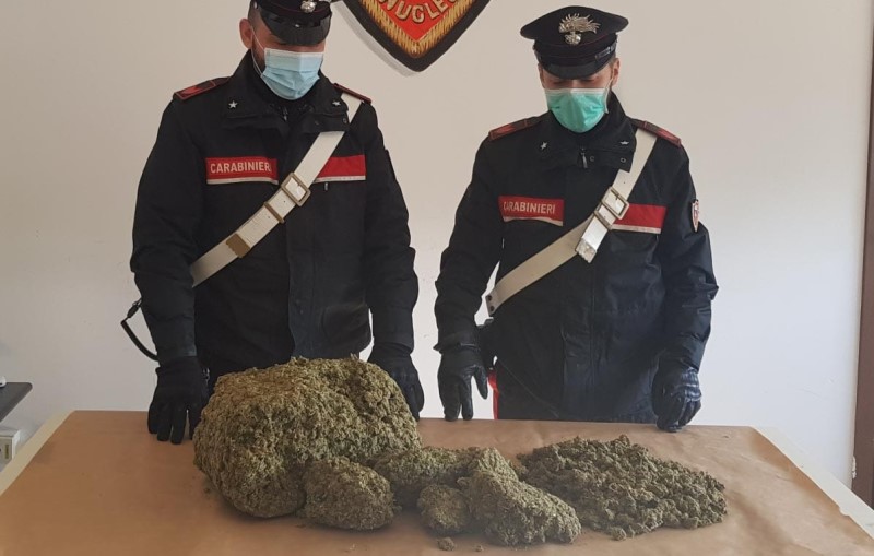 I carabinieri della Compagnia di Cirò Marina hanno arrestato un giovane 23enne e deferito in stato di libertà per i medesimi reati un suo amico 19enne che si trovava insieme a lui.