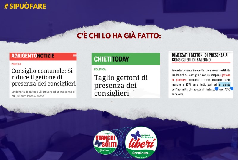 «Ce la stiamo mettendo tutta e andremo avanti. Ma la riduzione del gettone sta trovando troppi oppositori, che riducono il dibattito a un categorico "non si può fare", senza argomentare. Noi, invece, vogliamo evidenziare le
