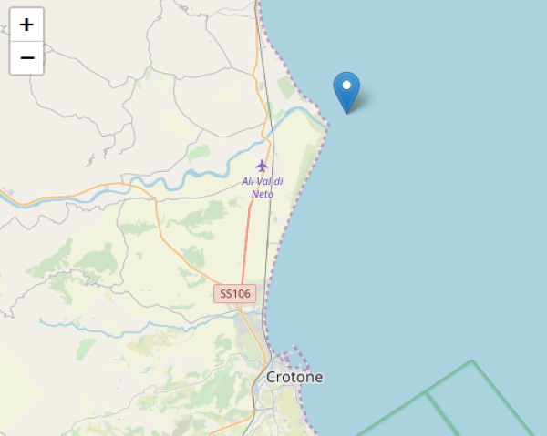 Una scossa di terremoto di magnitudo 3.2 della scala Richter si è verificato questa mattina alle ore 5:20 lungo la costa ionica Crotonese.