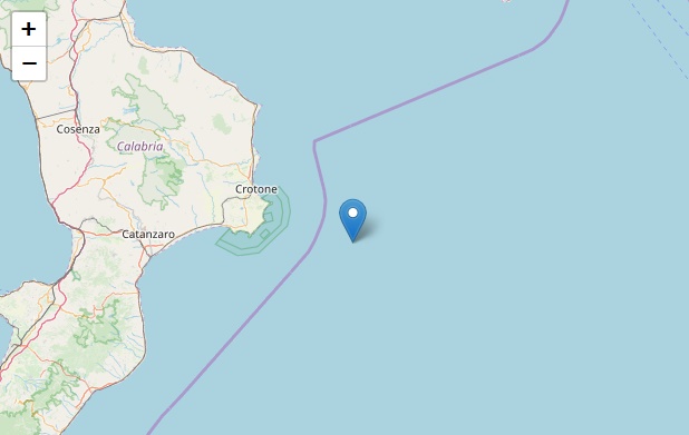 Nuova scossa di terremoto nel mar Ionio settentrionale. Il sisma si è verificato alle ore 7:58 al largo del promontorio di Capo Rizzuto ad una profondità di 20 km.