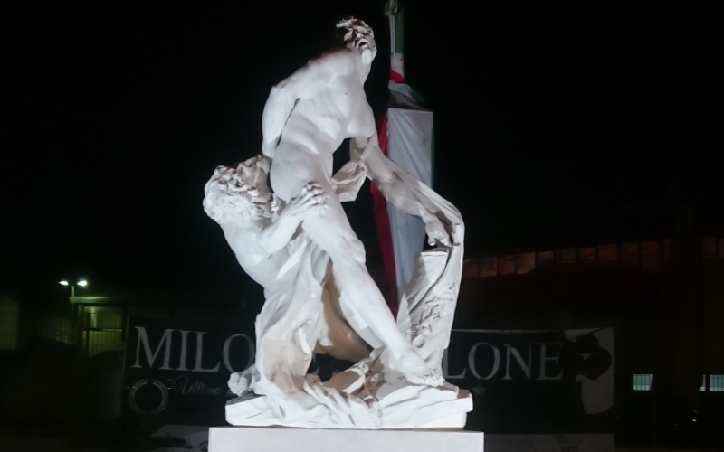 Una copia della statua di Pierre Puget esposta al Louvre è stata posizionata davanti l'ingresso del PalamiloneFinalmente la città di Crotone espone in una pubblica via una