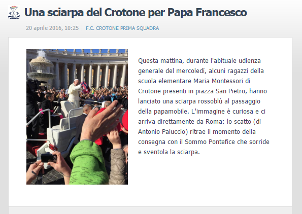 Sciarpa rossoblù per il Santo Padre, cresce l'entusiasmo per la promozione in serie ACittà in fermento, i colori rossoblù invadono le strade e addirittura arrivano a Piazza S
