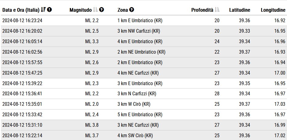 Nuovo sciame sismico nel Crotonese. Alle ore 15:22 una scossa di magnitudo 3.7 scala Richter è stata registrata con epicentro a 4 km in direzione sud-ovest del comune di Cirò